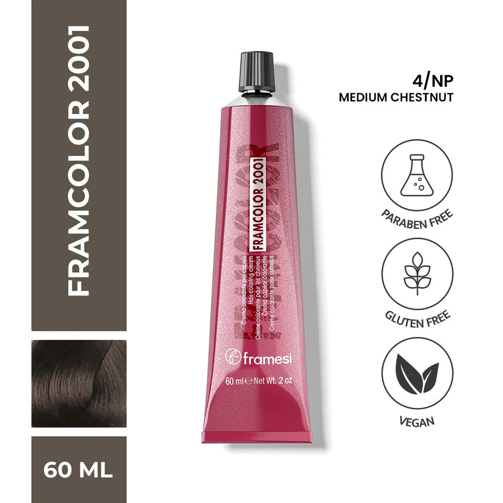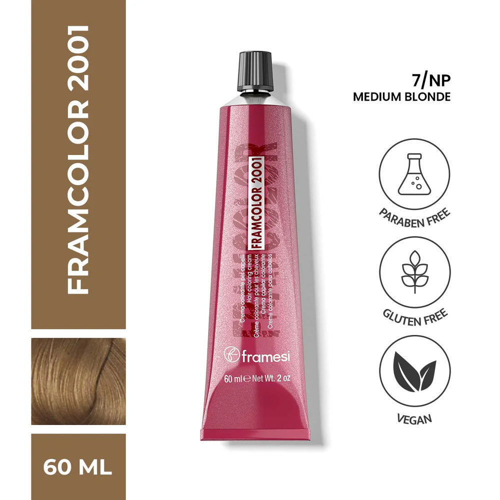 Framcolor 2001 Natural Perfects is a color series which provides superior grey coverage with natural looking hair and radiance. Use it to cover your greys and preserve your natural looks. It gives a natural warm coverage. It can also be used for fashion colors and highlights. It is recommended to be used with Professional Activator 20 (developer) for 30-35 minutes to achieve a perfect coverage, Professional Activator 30 or 40 (developer) for 45 minutes to achieve a fashion color and Professional Activator 5 or 10 (developer) for 5-15 minutes for toning and highlights. It is to be used in the ratio 1:2 (color:developer).