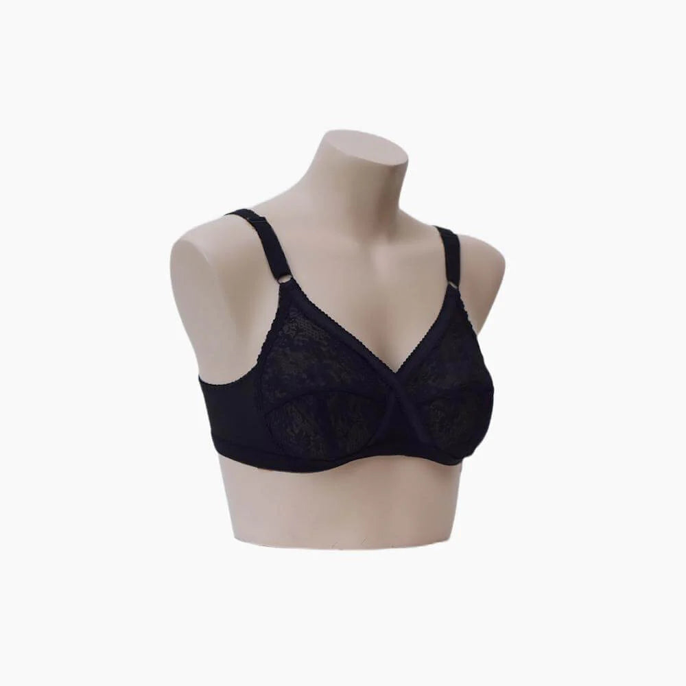 Featuring an all-over lace design with a soft net lining for added comfort. Its broad straps provide excellent support, ensuring a secure fit throughout the day. Designed with non-padded, full-coverage net cups, this bra combines elegance with functionality, making it an ideal choice for both everyday wear and special occasions.