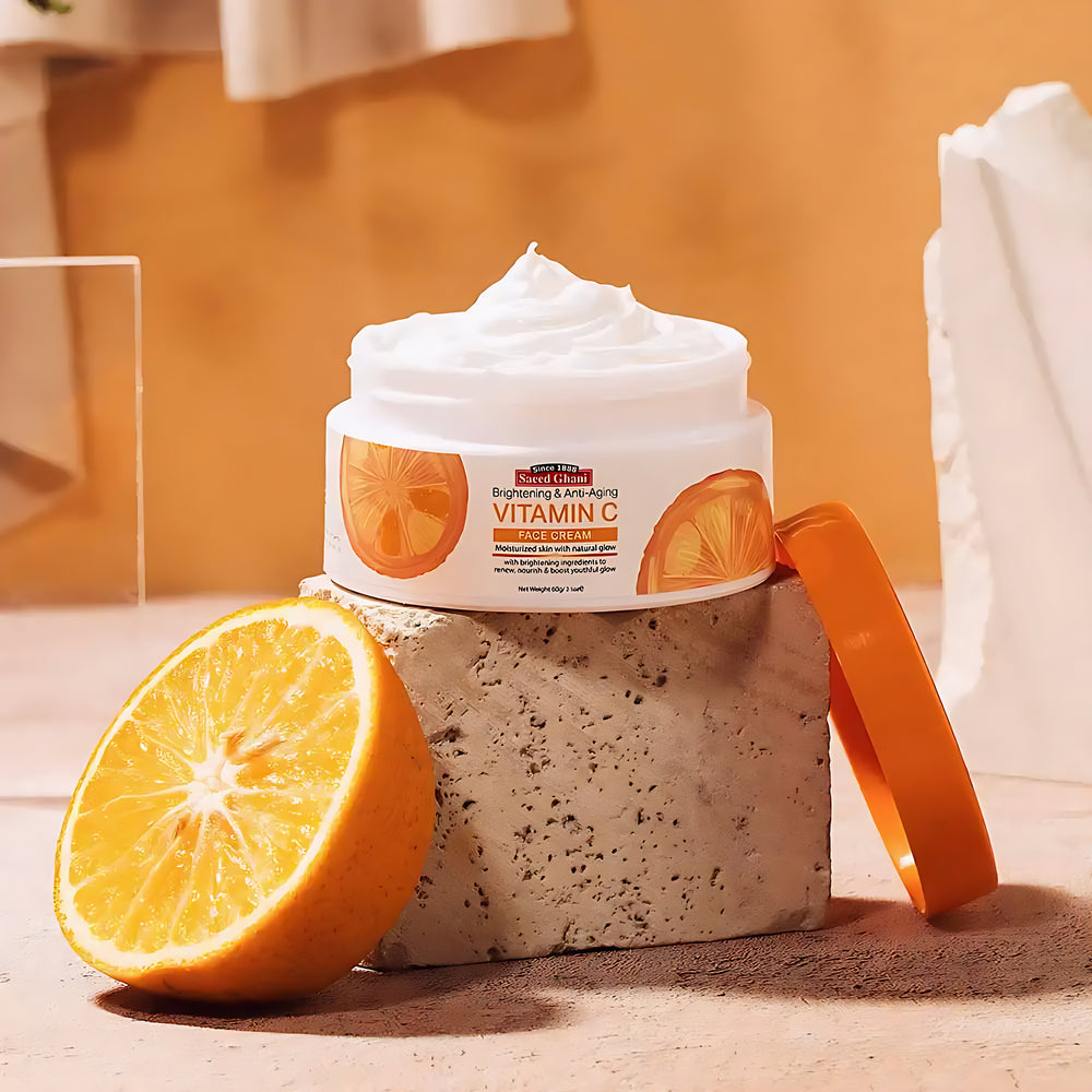 Infused with naturally powerful moisturizing & brightening ingredients, Saeed Ghani Brightening & Anti-Aging Vitamin C Face Cream provides rich hydration and helps reset naturally brighter-looking skin. It illuminates your skin, boosts collagen production, and reduces the appearance of wrinkles, fine lines, and pigmentation. Providing the much-needed natural moisture to your skin, it awakens and clarifies your complexion, revealing a natural healthy-looking glow.