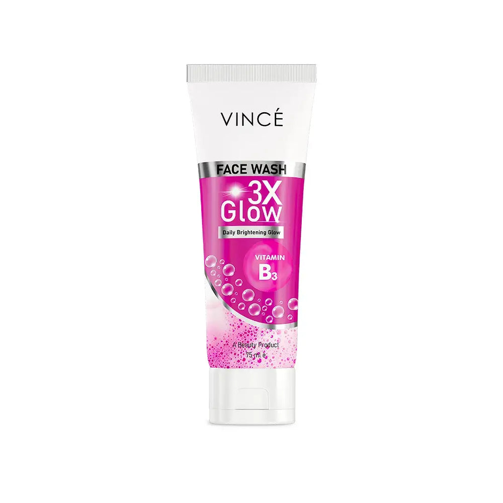 Vince 3X glow face wash contains the 3X power of Vitamin B3 and Rose Water; which supports in deep cleansing of all impurities, dust, and dirt particles from the skin while revealing the inner glow.