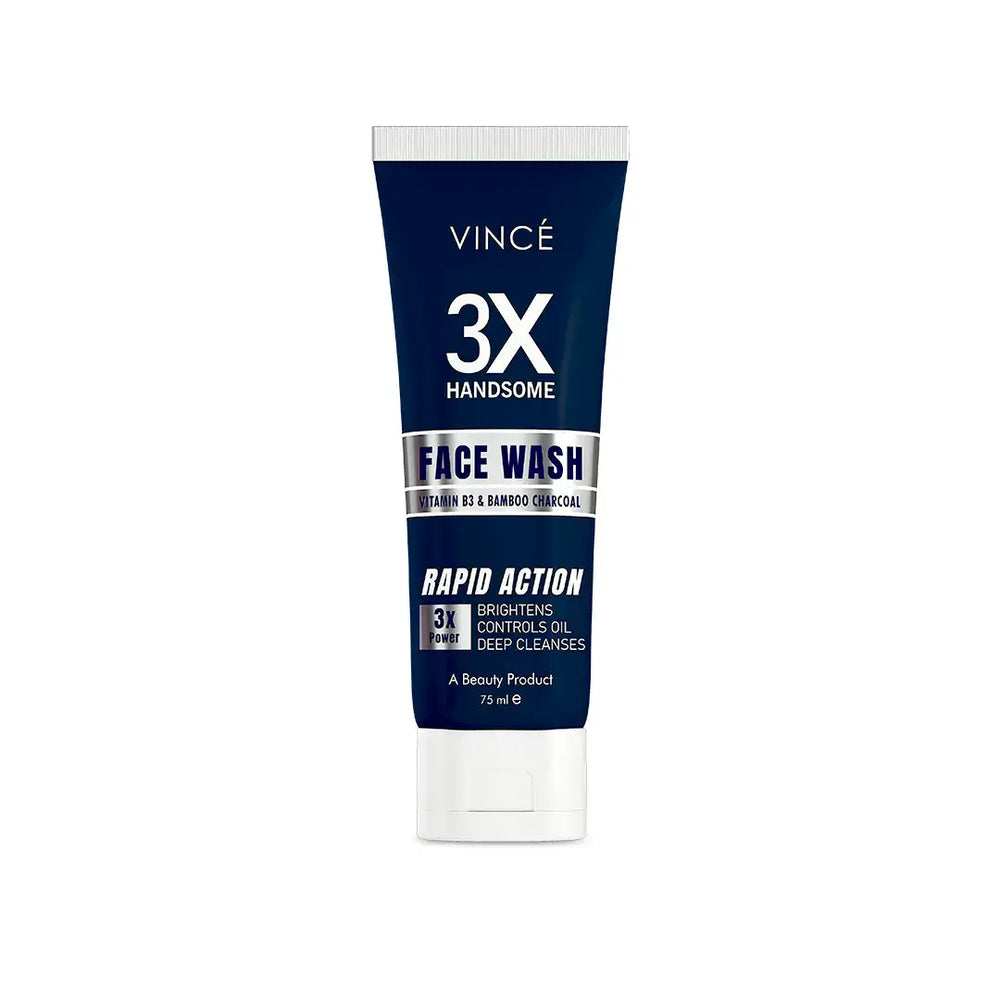 Vince 3X Handsome Face wash is infused with exceptional blend of Vitamin B3 & Bamboo Charcoal to deeply cleanse your skin while controlling excess oil and removing dullness. This rapid action face wash works 3X faster to instantly give a radiant glow.