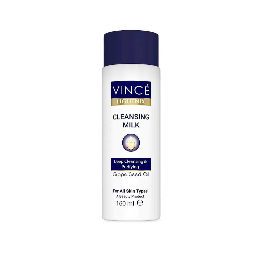 VINCE LIGHTNIX Cleansing Milk is a mild and soft deep pore cleanser enriched with grape seed extract. It penetrates deep into the skin and helps to gently remove grime, dirt, makeup & daily impurities.