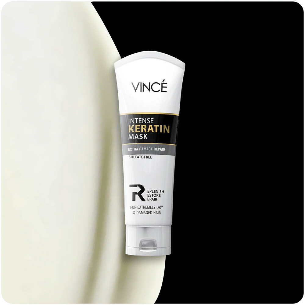 Vince Intense Keratin Hair Mask is an intensive conditioning hair care mask packed with Keratin, helps to replenish & repair extremely dry and damaged hair caused by hair dyes, hair straightening or from any other reason.
