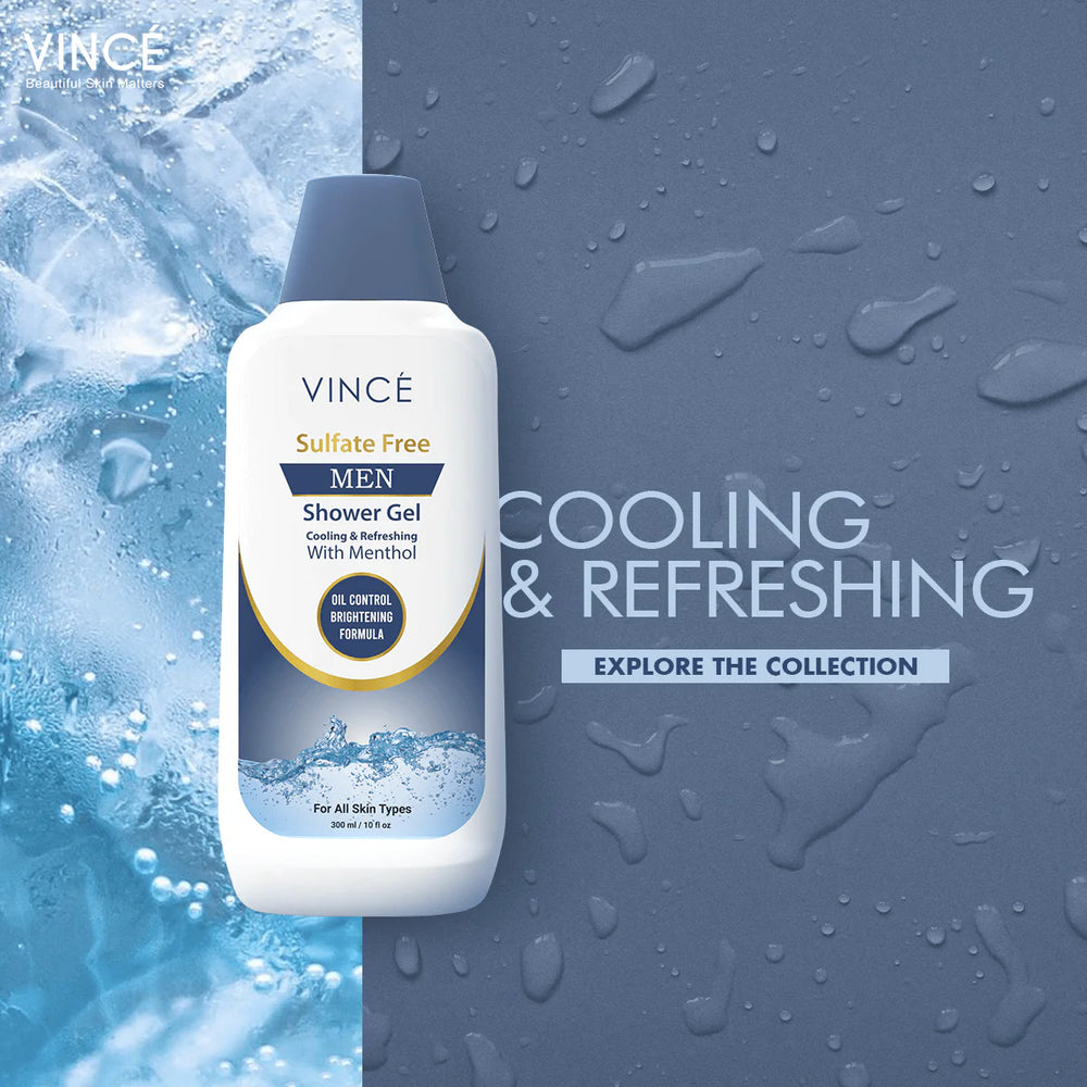 VINCÉ Men Shower Gel is a great menthol based anti-sweat shower gel that deep cleanses & leaves your skin feeling relieved, relaxed, and refreshed throughout the day with a cooling sensation.