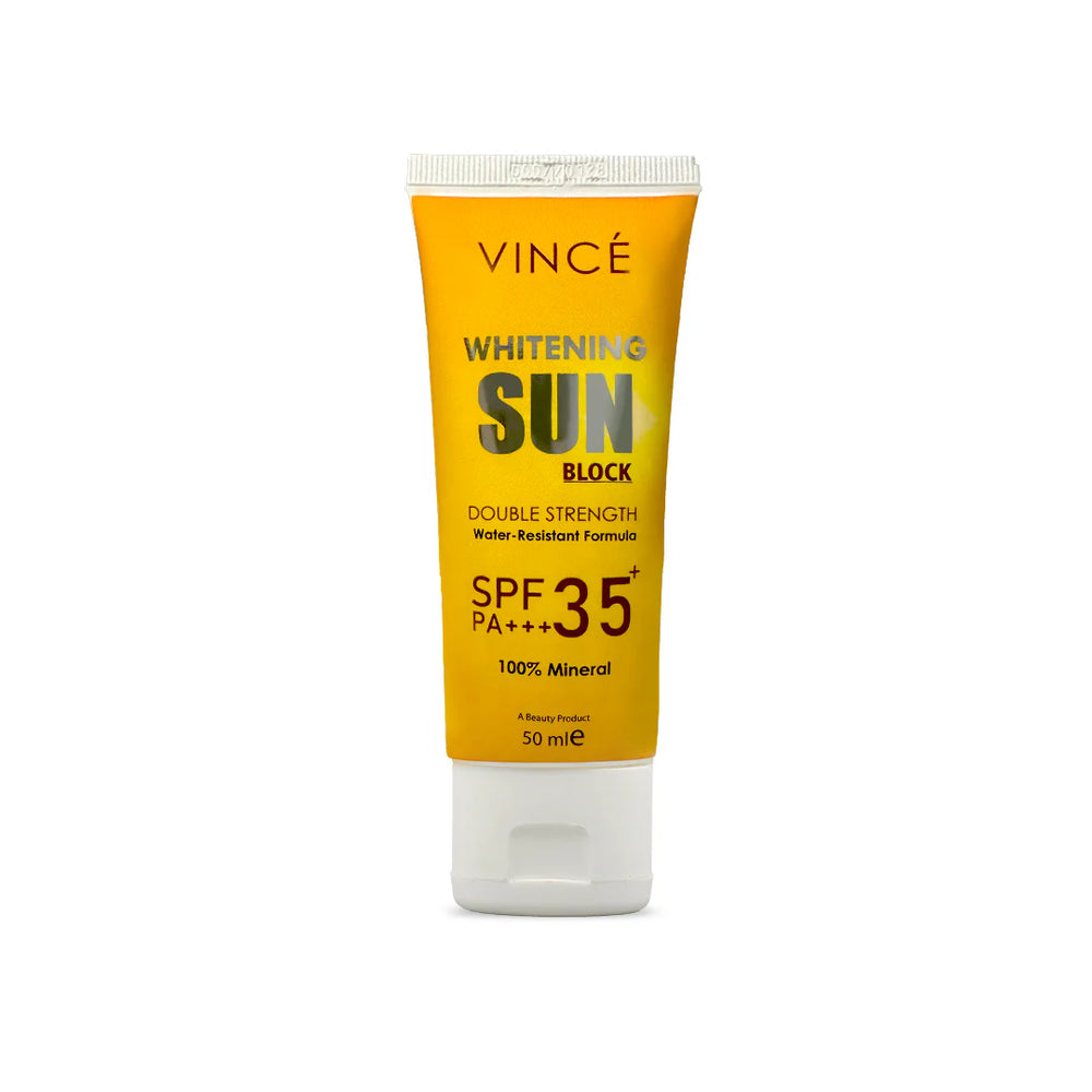 Vince Whitening Sunblock SPF 35 is a 100% mineral, skin-brightening, and water-resistant formula that helps to provide strong protection against the sun’s harmful UV rays while keeping skin smooth & dewy for long-lasting effect.